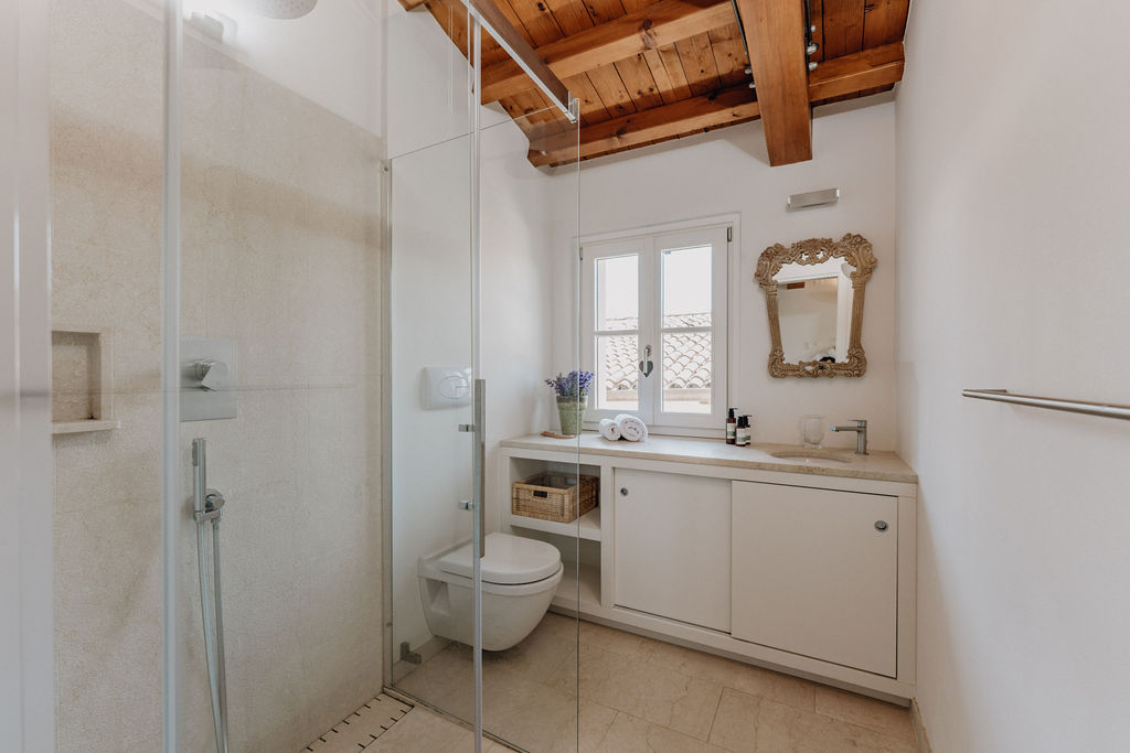 – Outdoor private shower areas with sinks, outside each apartment and the main villa –